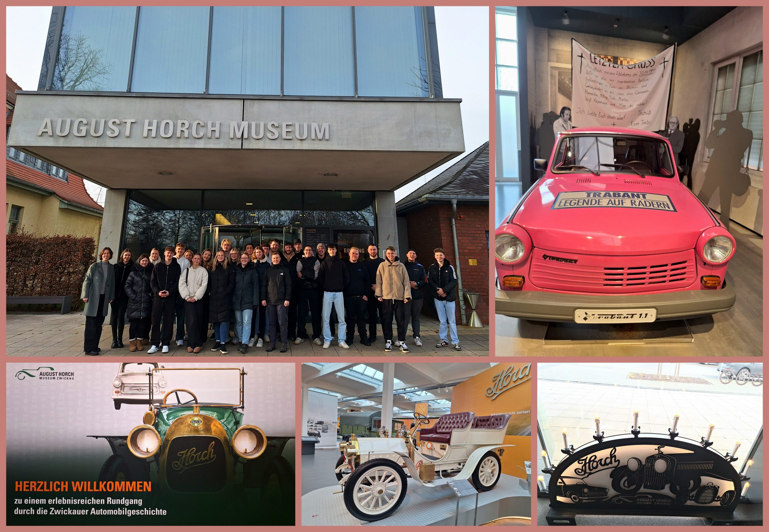 Am 09.12.2026 besuchte das dritte Lehrjahr der Automobilkaufleute das Horch Museum in Zwickau. Die Exkursion bot wertvolle Einblicke in die traditionsreiche Automobilgeschichte der Stadt, in der sowohl Horch als auch Audi ihre Wurzeln haben. August Horch gründete hier nicht nur das Unternehmen Horch, sondern – nach einem Namensstreit – auch die später weltbekannte Marke Audi. Die Schülerinnen und Schüler der Klasse AK 23 erlebten eindrucksvoll restaurierte historische Fahrzeuge, spannende Hintergrundgeschichten und moderne Präsentationen, die die Entwicklung von den frühen Horch-Modellen über die Auto-Union-Zeit bis hin zu heutigen Technologien nachzeichnen. Der Besuch verband fachliches Wissen mit lebendiger Geschichte und stärkte zudem den Zusammenhalt der Auszubildenden. Ein rundum gelungener und inspirierender Tag für alle Beteiligten.