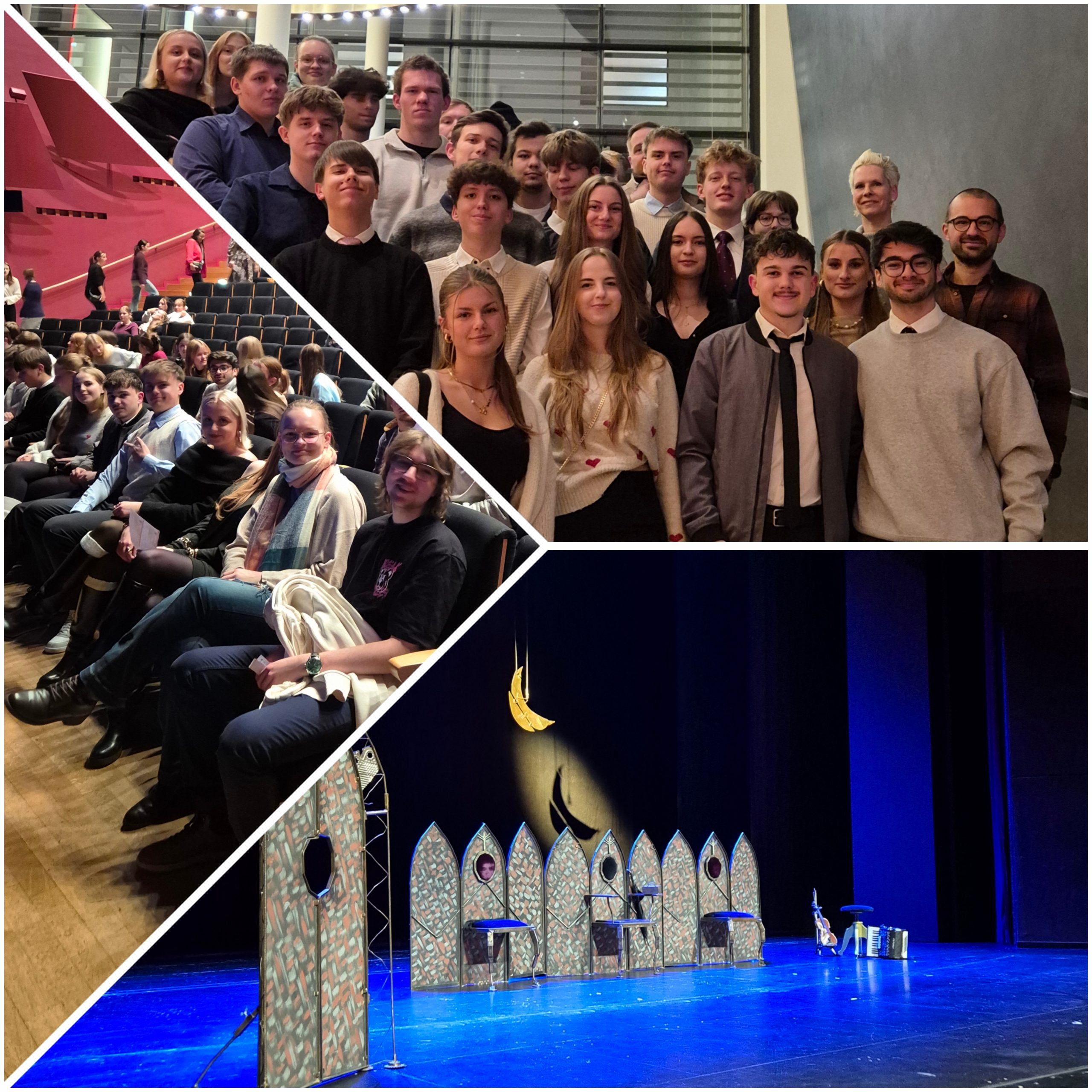 …lud das Theater Erfurt ein, sich mit dem CHRISTMAS CAROL von Charles Dickens in englischer Sprache auf Weihnachten einzustimmen. Dieser Einladung folgten in den Abendstunden des 5. Dezember 2025 zahlreiche Schülerinnen und Schüler der Klassen BG 24, BG 23 und FOS 24, die zusammen mit Frau Schwarz-Haderek und Herrn Kirschen eine fulminante Vorstellung erlebten, die bei allen Begeisterung und feierliche Stimmung auslöste.
