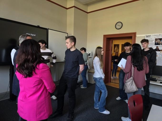 Speed Dating ist die neue Form des Kennenlernens von Praktikanten und Betrieben. Genau so haben am 28. April zukünftige Schüler der FOS 26 einige potenzielle Betriebe Jenas kennengelernt, um ein passendes Praktikum zu finden. Die Veranstaltung stieß auf große Resonanz, so dass der größte Klassenraum im Haus kaum ausreichte. Zunächst hatten die Lehrkräfte Sabine Smolinski und GuidoTautorat Schüler, Eltern und Vertreter der Betriebe in der Stoyschule begrüßt und die Details zum ganzjährigen Praktikum erläutert. Gemäß einer Verwaltungsvorschrift ist in Klasse 11 der Fachoberschule an drei Tagen in der Woche ein Praktikum mit täglich 8 Stunden abzuleisten. Die Schüler werden in Jenaer Betrieben wie Auszubildende im ersten Ausbildungsjahr eingesetzt und sollen grundlegende Kenntnisse über Arbeits- und Leistungsprozesse erwerben sowie Einblicke in die Zusammenhänge betrieblicher und beruflicher Praxis gewinnen. Im zweiten Teil der Veranstaltung trafen Vertreter der Betriebe und künftige FOS-Schüler in kurzen Einzelgesprächen aufeinander. Unterstützt wurde die Veranstaltung an dem Nachmittag von den beiden Schülerinnen der FOS 25 Amira Jemmal und Elisa Hartmann, die in diesem Schuljahr das Praktikum absolvieren.