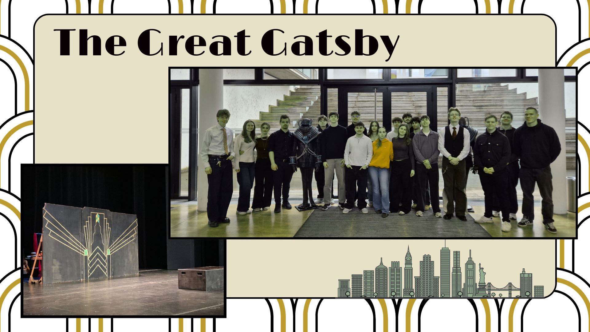 Am Montag, den 30. März 2026 gastierte der jüngst 100 Jahre alt gewordene Klassiker THE GREAT GATSBY von F. Scott Fitzgerald als englischsprachiges Bühnenstück am Theater Erfurt. Nachdem sich die Schülerinnen und Schüler der BG 24 während der letzten Unterrichtsstunden im Fach Englisch bereits mit dem Inhalt des Romans, dem Evergreen des American Dreams und auch mit all den Geschehnissen der aufregenden 20er Jahre des vergangenen Jahrhunderts auseinandergesetzt hatten, bildete das sprichwörtiche Eintauchen in die Erzählung mit allen Sinnen einen unvergessenen Höhepunkt. Trotz karger Requisiten schafften es die fünf Schauspielerinnen und Schauspieler dank fantasievoller Kostüme und großartiger musikalischer Einlagen, das Stück ins Heute zu holen und zu zeigen, dass die grundlegenden Themen wie zwischenmenschliche Beziehungen, der Traum vom persönlichen Erfolg und der Wunsch des Einzelnen, in der Gemeinschaft wahrgenommen zu werden, nicht an Relevanz verloren haben.
