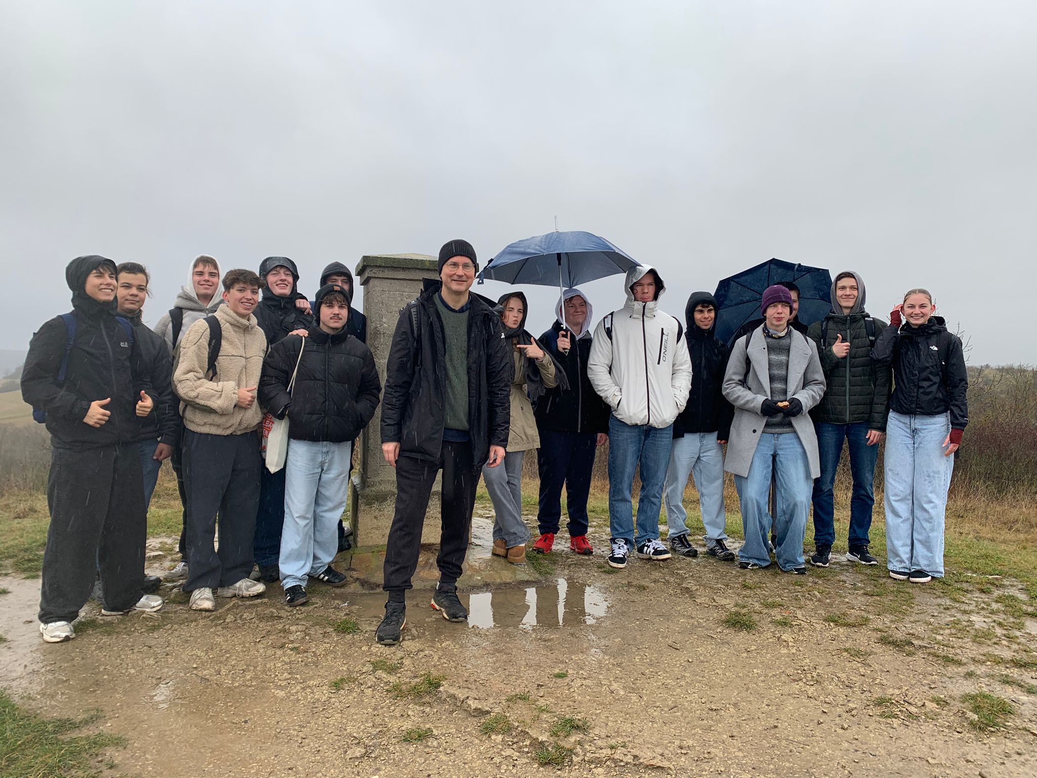 Die Klasse BG 24 begab sich Mitte November bei schwierigen Witterungsverhältnissen auf eine Exkursion der besonderen Art: eine Wanderung über das historische Schlachtfeld, auf dem Napoleon I. am 14. Oktober 1806 die preußische Armee vernichtend schlug. Anstelle der Stoy-Schule diente an diesem Vormittag die thüringische Landschaft rund um Jena als lebendiges Klassenzimmer. Ausgestattet mit Kartenmaterial und unter der Leitung ihres Geschichtslehrers Mike Stieber, folgten die Jugendlichen dem „NapoleonPfad“, einem Erlebnispfad, der die originalen Schauplätze verbindet. Die Gymnasiasten erfuhren, dass die Schlacht von 1806 mit rund 210.000 beteiligten Soldaten und über 30.000 Toten oder Verletzten eine immense europäische Dimension hatte. Direkt an den Gedenkstätten und Denkmälern wurde Geschichte greifbar: Die strategischen Entscheidungen, die verzweifelte Lage der preußischen Truppen und die militärische Überlegenheit der Franzosen wurden vor Ort nachvollziehbarer.
