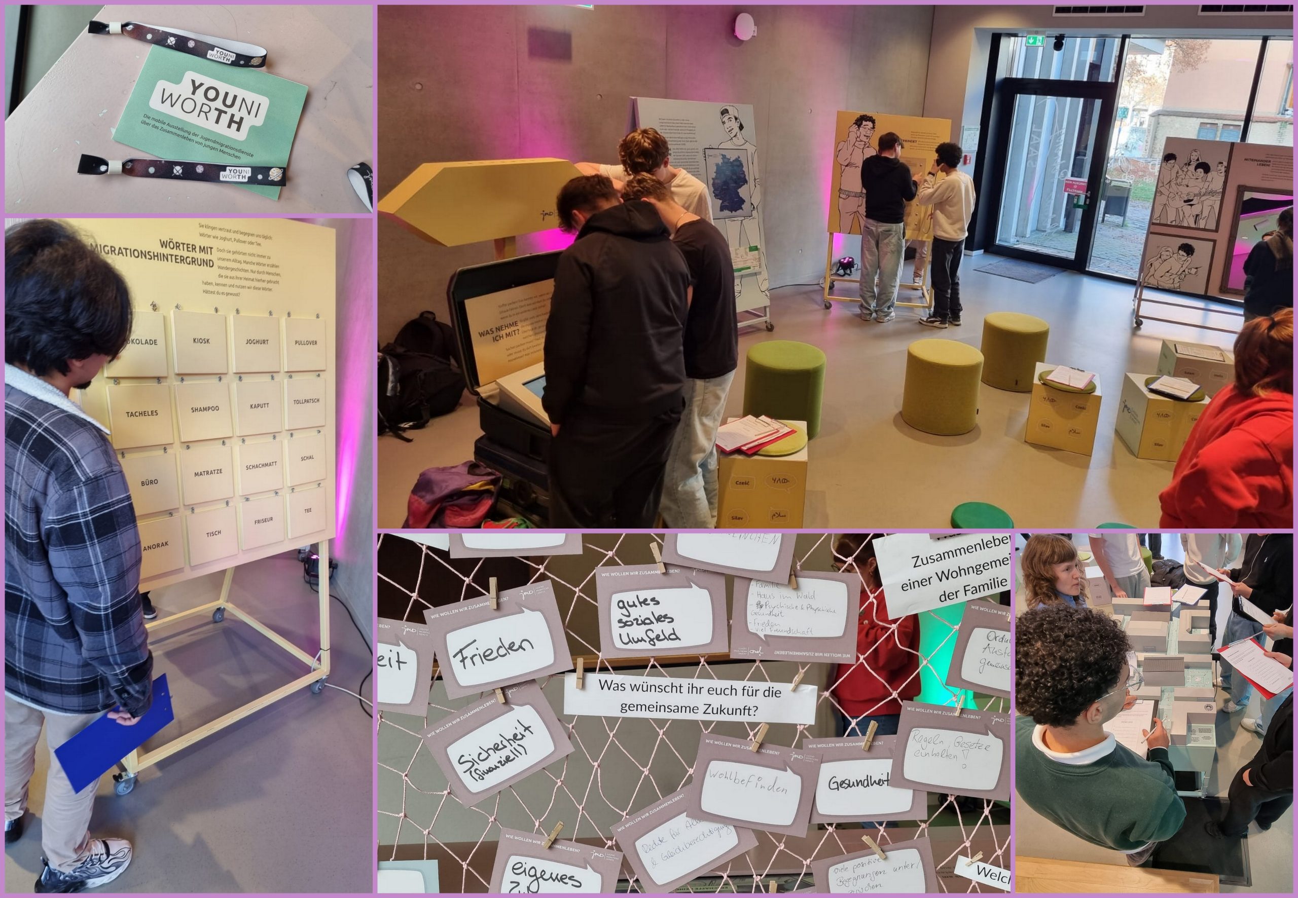 Unter dem Motto „Verstehen – Begegnen – Zusammenleben“ war unsere Klasse am 11. Dezember 2025 zur Ausstellung YOUNIWORTH in der Ernst-Abbe-Bücherei. Diese mobile Ausstellung dient dazu, das Zusammenleben junger Menschen in Deutschland neu zu entdecken. Wir stellten uns den Fragen: Wie fühlst du dich in Deutschland? Was ist dir wichtig? Wie wollen wir zusammenleben? Im Helene-Pretrenz-Saal nutzten wir sieben multimediale Stationen – darunter ein Kurzfilm, interaktive Spiele und eine kreative Selfie-Aktion. Es war eine sehr interessante Veranstaltung unter Moderation von Frau Geisler, Medienpädagogin der EAB Jena.